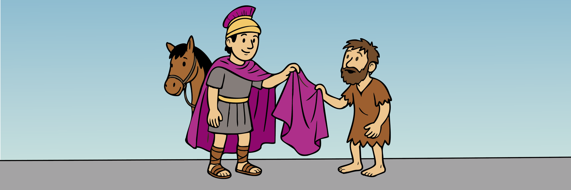 Der heilige Martin, der mit einem Bettler den Mantel teilte, nahm besonders die Armen und Hilfsbedürftigen unter seinen Schutz. Nach einem Traum, in dem ihm Jesus erschien, war sein Leben vom christlichen Glauben geprägt. Er ließ sich taufen und verzichtete schließlich auf eine sichere militärische Laufbahn. Als Bischof setzte er sich für die Hilfsbedürftigen ein und wurde damit zu einem Vorbild, das bis in die heutige Zeit verehrt wird.